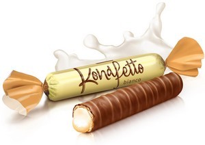 Rurki waflowe w polewie kakaowej z nadzieniem o smaku mlecznym.